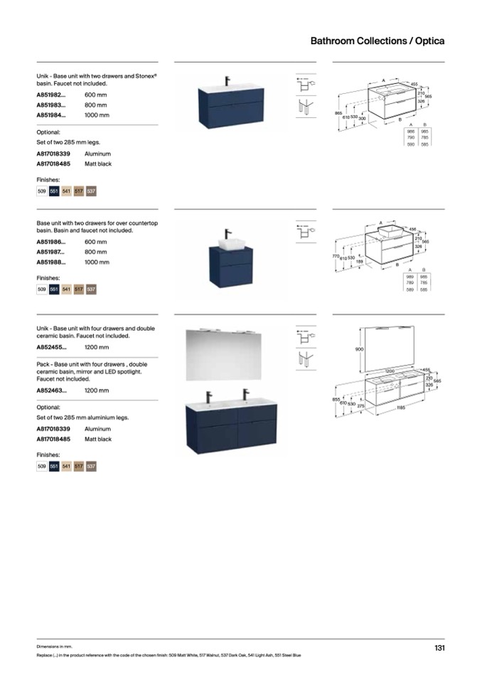 Replace (...) in the product reference with the code of the chosen finish: 509 Matt White, 517 Walnut, 537 Dark Oak, 541 Light Ash, 551 Steel Blue