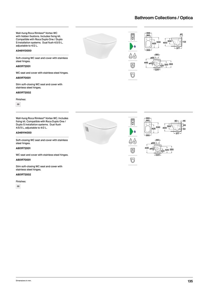 Wall-hung Roca Rimless® Vortex WC. Includes