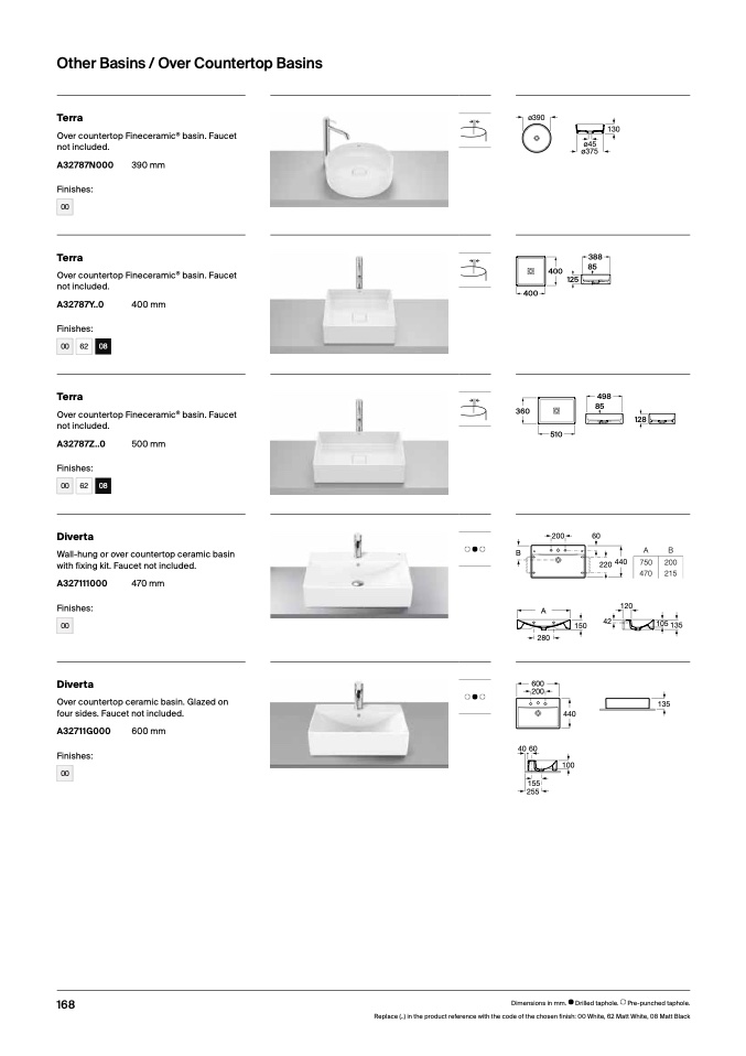 Replace (..) in the product reference with the code of the chosen finish: 00 White, 62 Matt White, 08 Matt Black