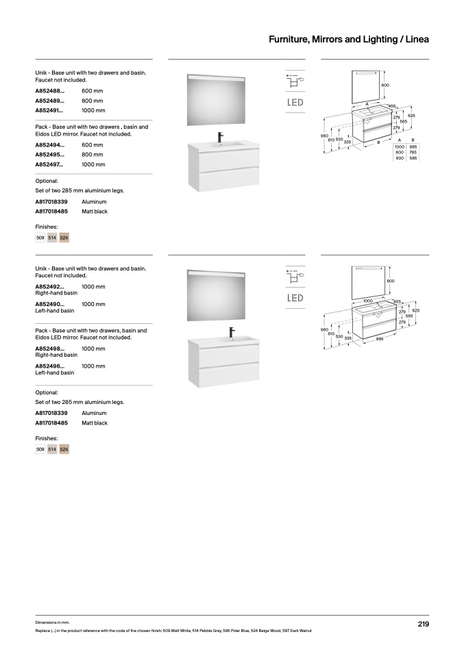 Replace (...) in the product reference with the code of the chosen finish: 509 Matt White, 514 Pebble Grey, 596 Polar Blue, 524 Beige Wood, 597 Dark Walnu