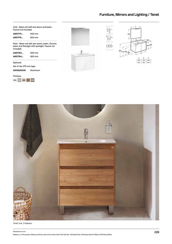Replace (...) in the product reference with the code of the chosen finish: 402 City Oak, 434 Nordic Ash, 516 Glossy Grey, 517 Walnut, 806 Glossy White
