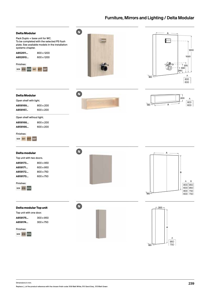 Replace (...) of the product reference with the chosen finish code: 509 Matt White, 510 Sand Grey , 513 Matt Gree