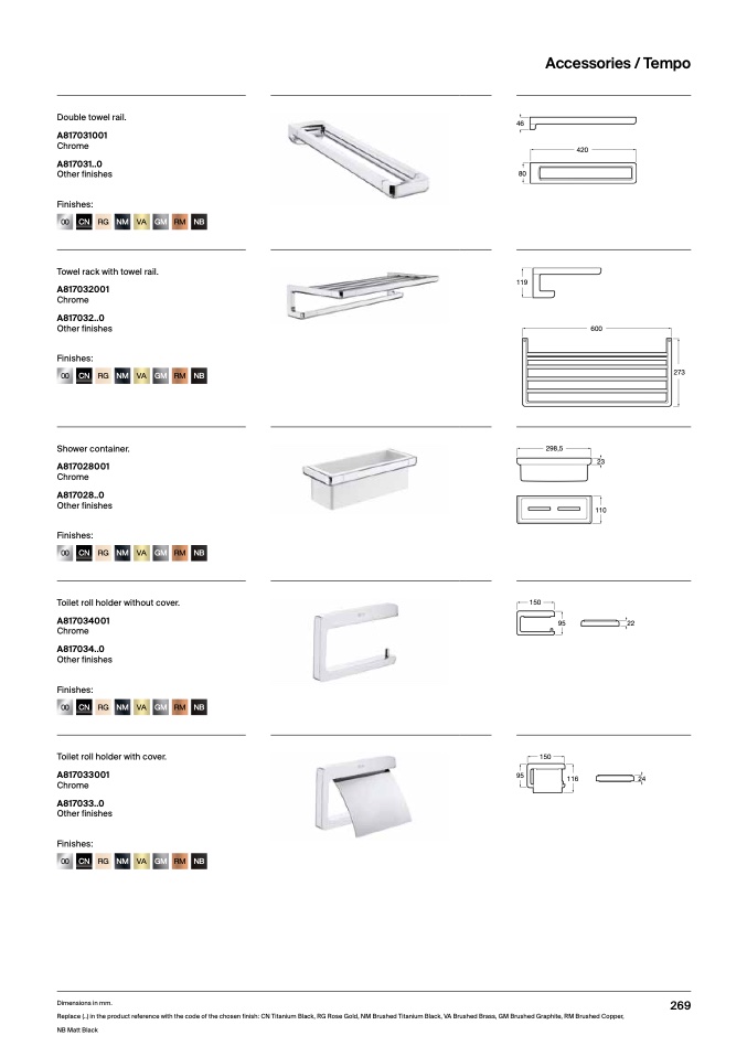 Replace (..) in the product reference with the code of the chosen finish: CN Titanium Black, RG Rose Gold, NM Brushed Titanium Black, VA Brushed Brass, GM Brushed Graphite, RM Brushed Copper,