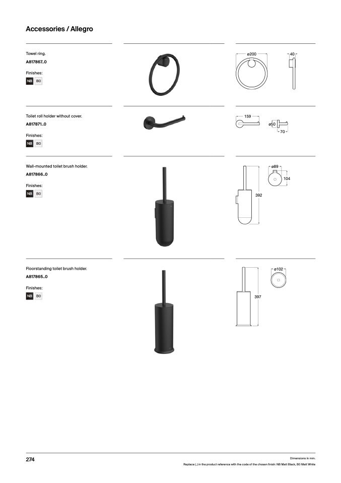 Replace (..) in the product reference with the code of the chosen finish: NB Matt Black, B0 Matt White