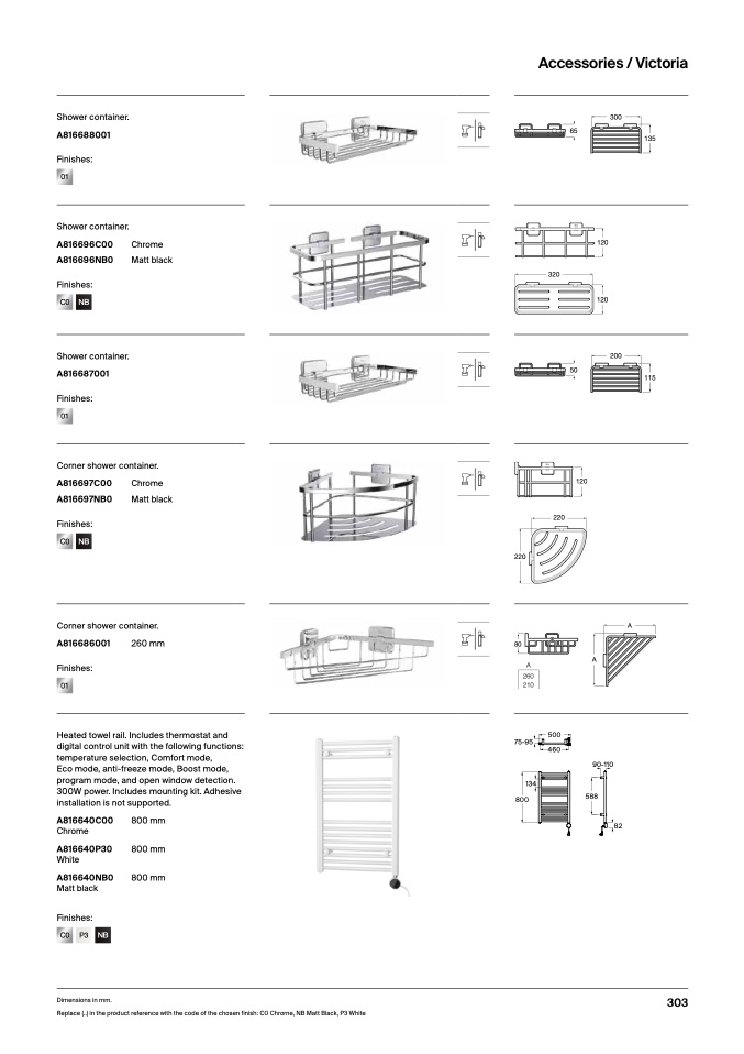 Replace (..) in the product reference with the code of the chosen finish: C0 Chrome, NB Matt Black, P3 White