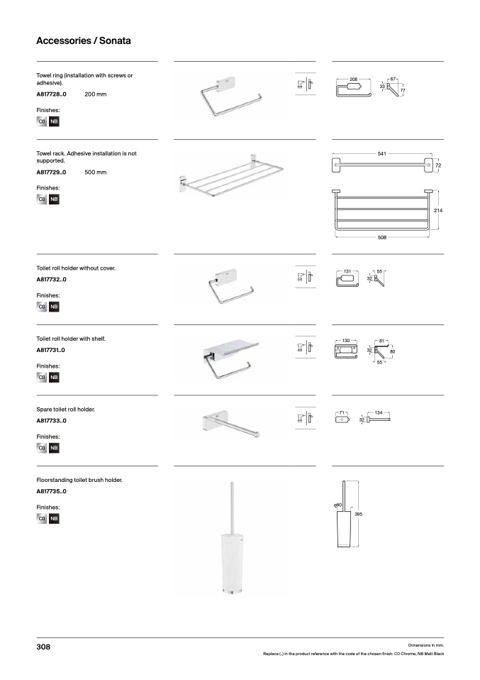 Replace (..) in the product reference with the code of the chosen finish: C0 Chrome, NB Matt Black