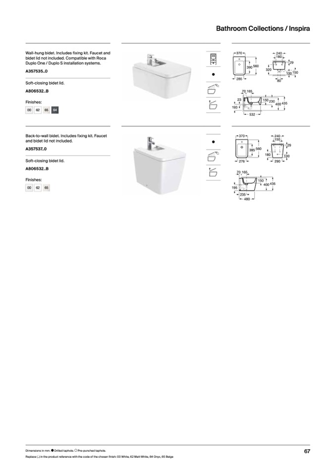 Replace (..) in the product reference with the code of the chosen finish: 00 White, 62 Matt White, 64 Onyx, 65 Beige