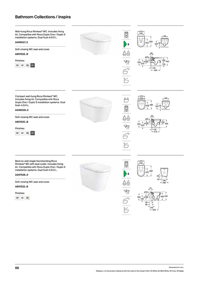 Replace (..) in the product reference with the code of the chosen finish: 00 White, 62 Matt White, 64 Onyx, 65 Beige