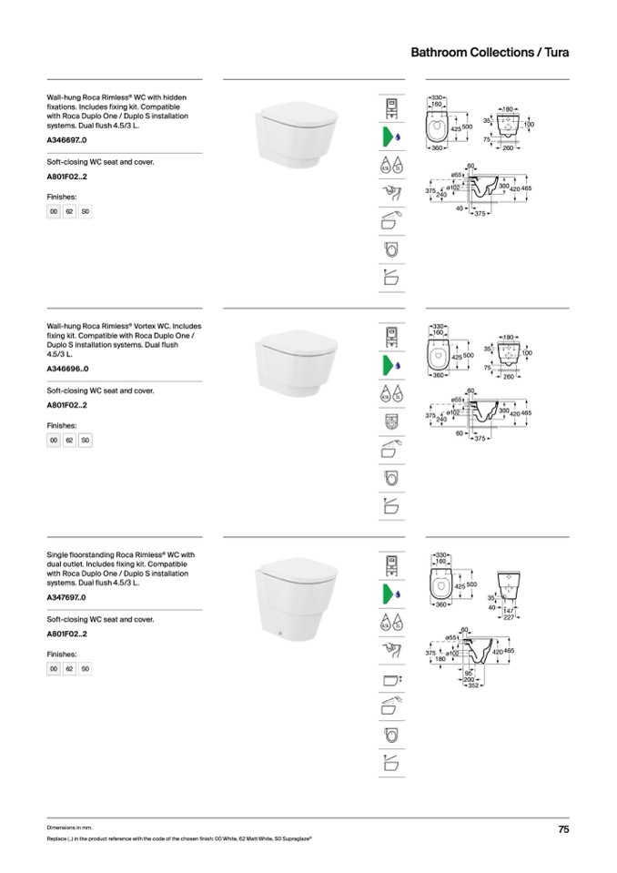Replace (..) in the product reference with the code of the chosen finish: 00 White, 62 Matt White, S0 Supraglaze®