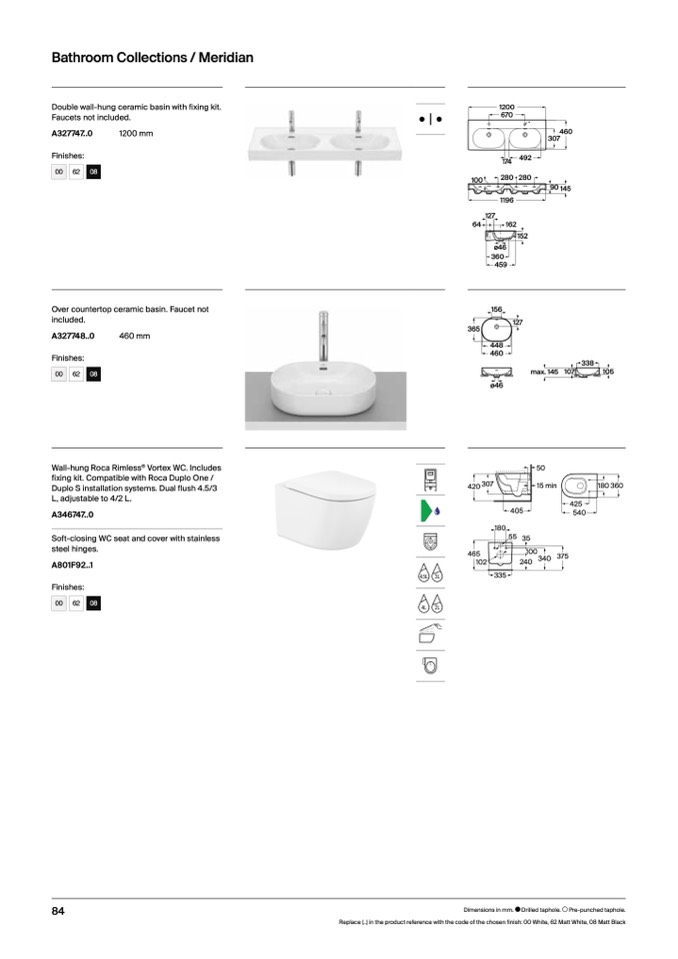 Replace (..) in the product reference with the code of the chosen finish: 00 White, 62 Matt White, 08 Matt Black