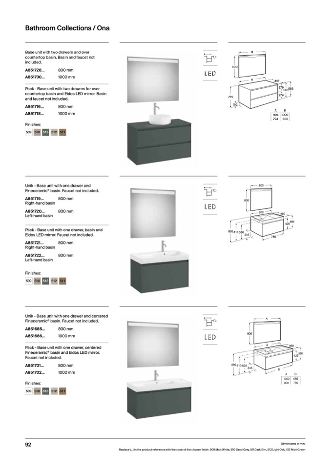 Replace (...) in the product reference with the code of the chosen finish: 509 Matt White, 510 Sand Grey, 511 Dark Elm, 512 Light Oak, 513 Matt Green