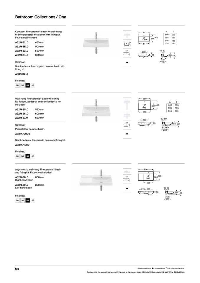 Replace (..) in the product reference with the code of the chosen finish: 00 White, S0 Supraglaze®, 62 Matt White, 08 Matt Black