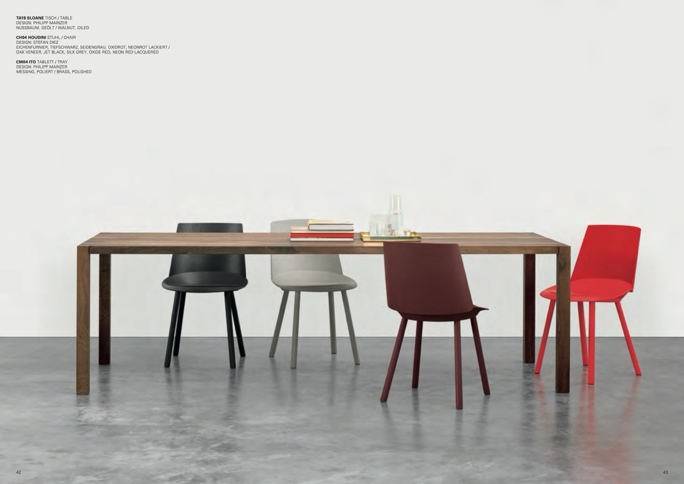 OAK VENEER, JET BLACK, SILK GREY, OXIDE RED, NEON RED LACQUERED