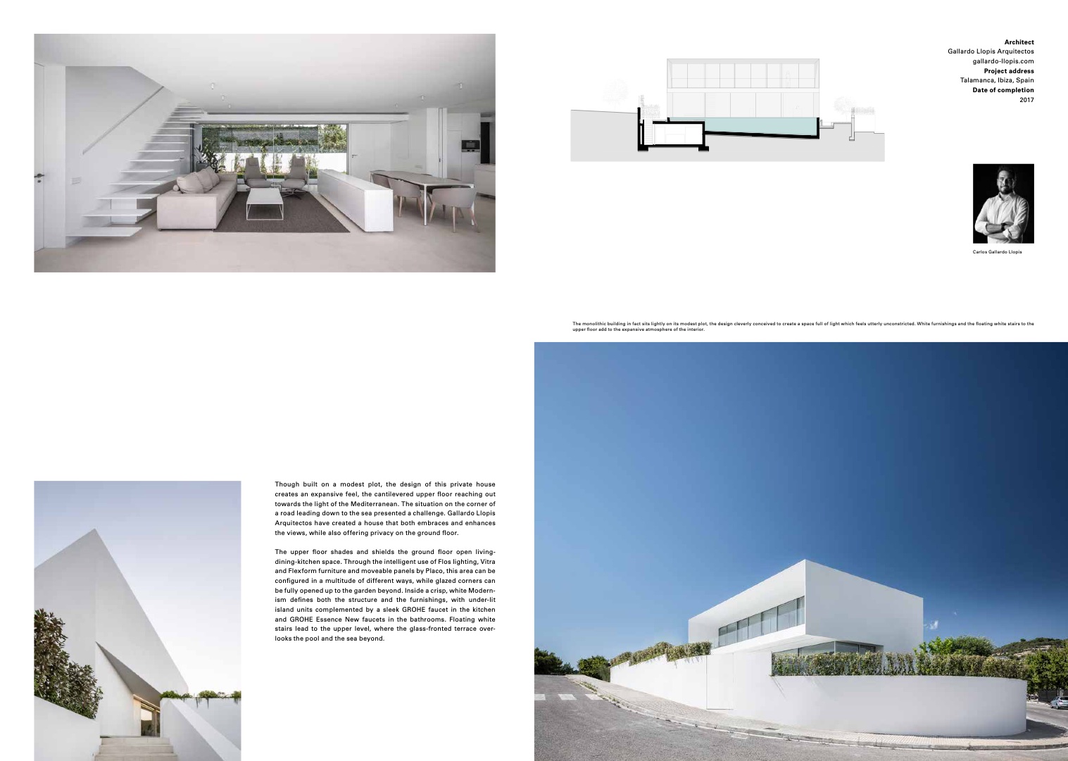 The monolithic building in fact sits lightly on its modest plot, the design cleverly conceived to create a space full of light which feels utterly unconstricted. White furnishings and the