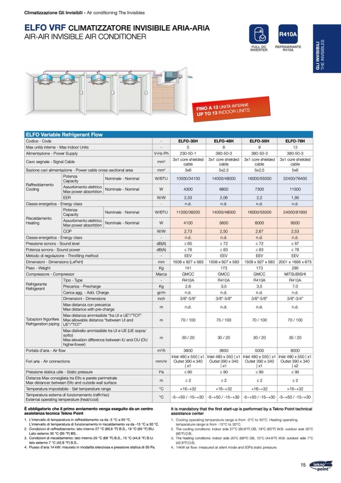 4. Flusso d’aria 14 kW: misurato in modalità silenziosa e pressione statica di 50 Pa.