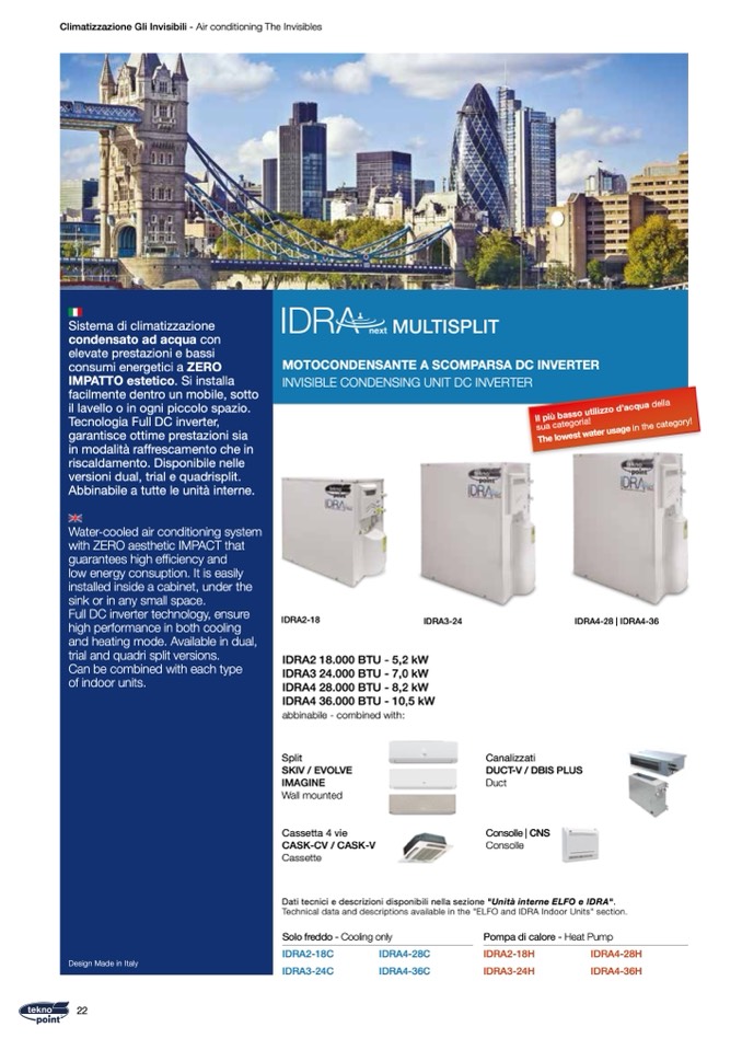 Technical data and descriptions available in the "ELFO and IDRA Indoor Units" section.