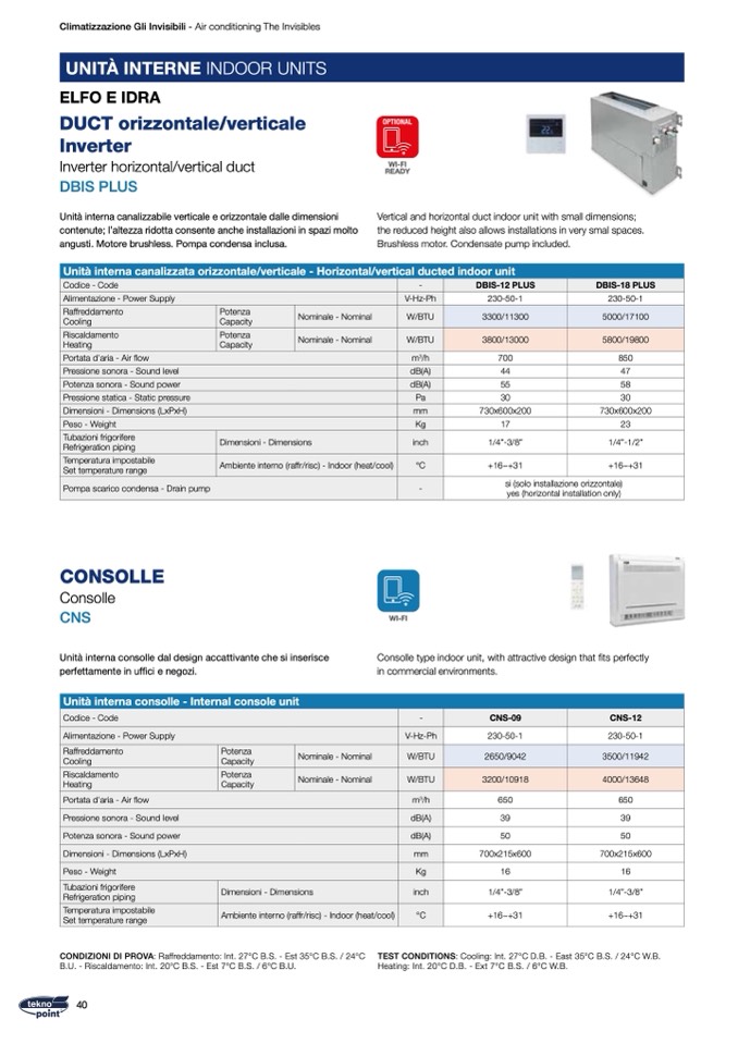 angusti. Motore brushless. Pompa condensa inclusa.