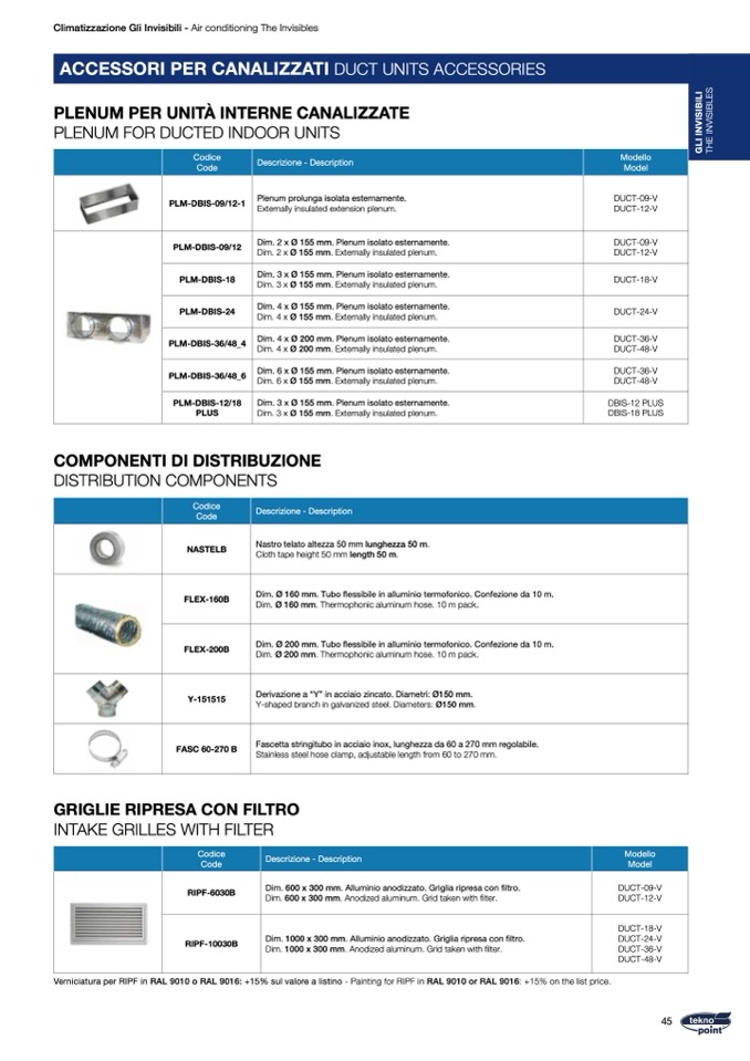 Verniciatura per RIPF in RAL 9010 o RAL 9016: +15% sul valore a listino - Painting for RIPF in RAL 9010 or RAL 9016: +15% on the list price.