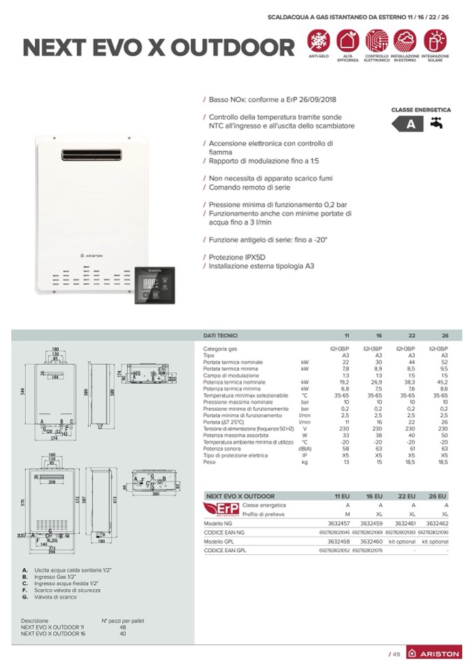 SCALDACQUA A GAS ISTANTANEO DA ESTERNO 11 / 16 / 22 / 26