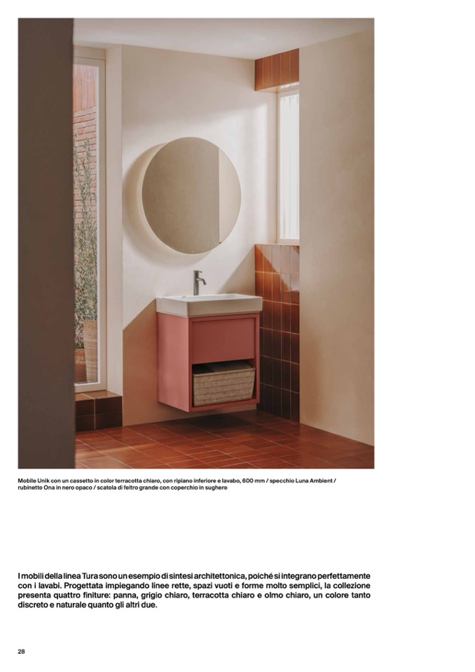 con i lavabi. Progettata impiegando linee rette, spazi vuoti e forme molto semplici, la collezione