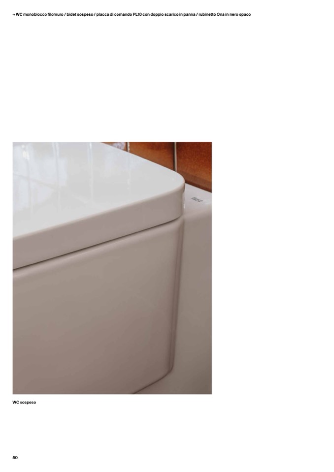 WC monoblocco filomuro / bidet sospeso / placca di comando PL10 con doppio scarico in panna / rubinetto Ona in nero opaco