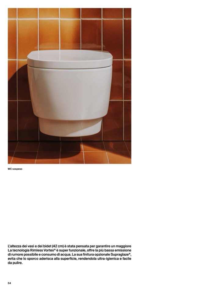 L’altezza dei vasi e dei bidet (42 cm) è stata pensata per garantire un maggiore