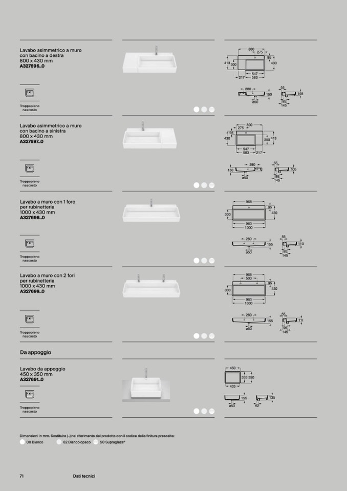 Dimensioni in mm. Sostituire (..) nel riferimento del prodotto con il codice della finitura prescelta: