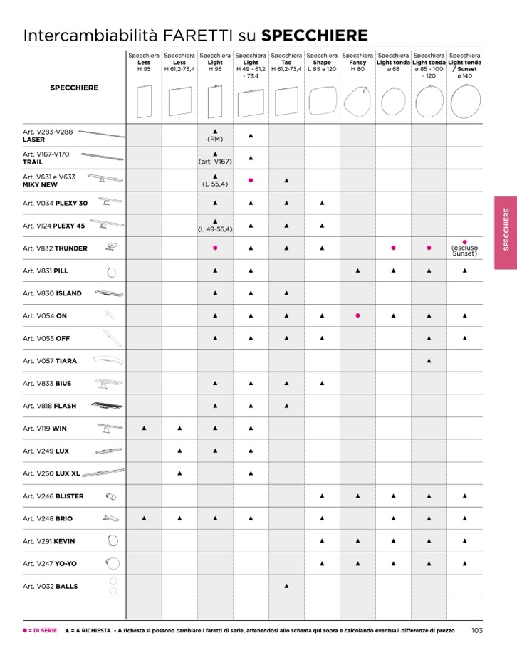 = DI SERIE m = A RICHIESTA - A richesta si possono cambiare i faretti di serie, attenendosi allo schema qui sopra e calcolando eventuali differenze di prezzo