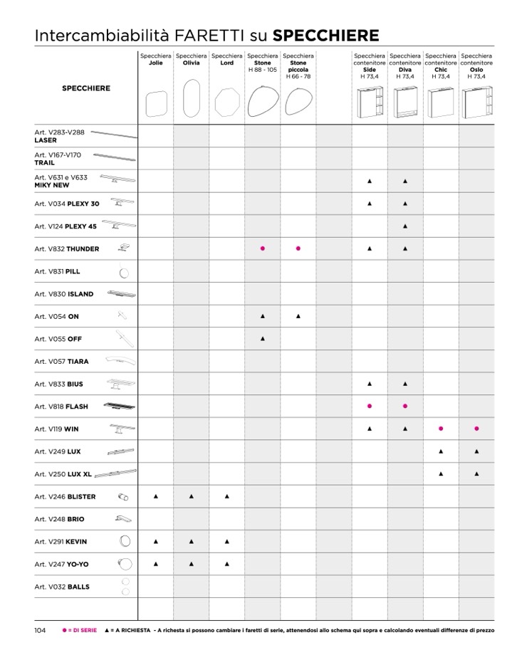 = A RICHIESTA - A richesta si possono cambiare i faretti di serie, attenendosi allo schema qui sopra e calcolando eventuali differenze di prezzo