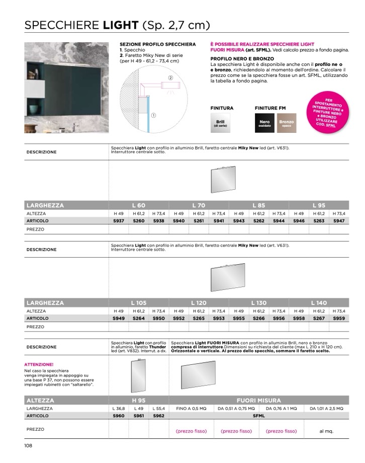 FUORI MISURA (art. SFML). Vedi calcolo prezzo a fondo pagina.