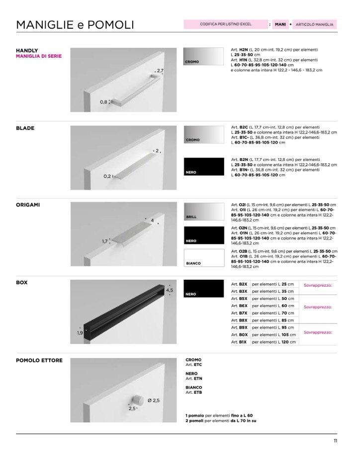 1 pomolo per elementi fino a L 60