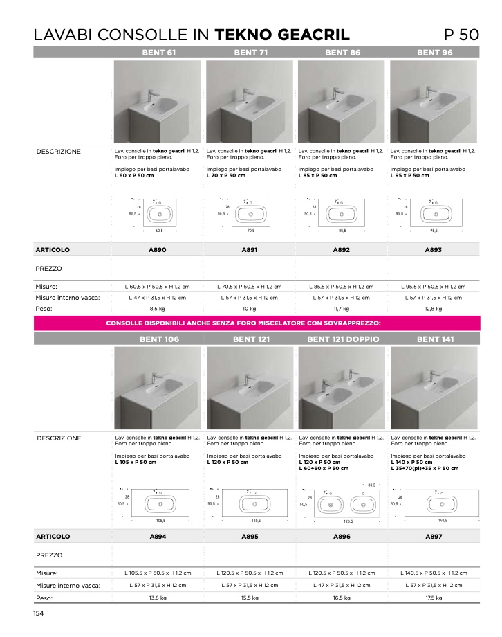 CONSOLLE DISPONIBILI ANCHE SENZA FORO MISCELATORE CON SOVRAPPREZZO: