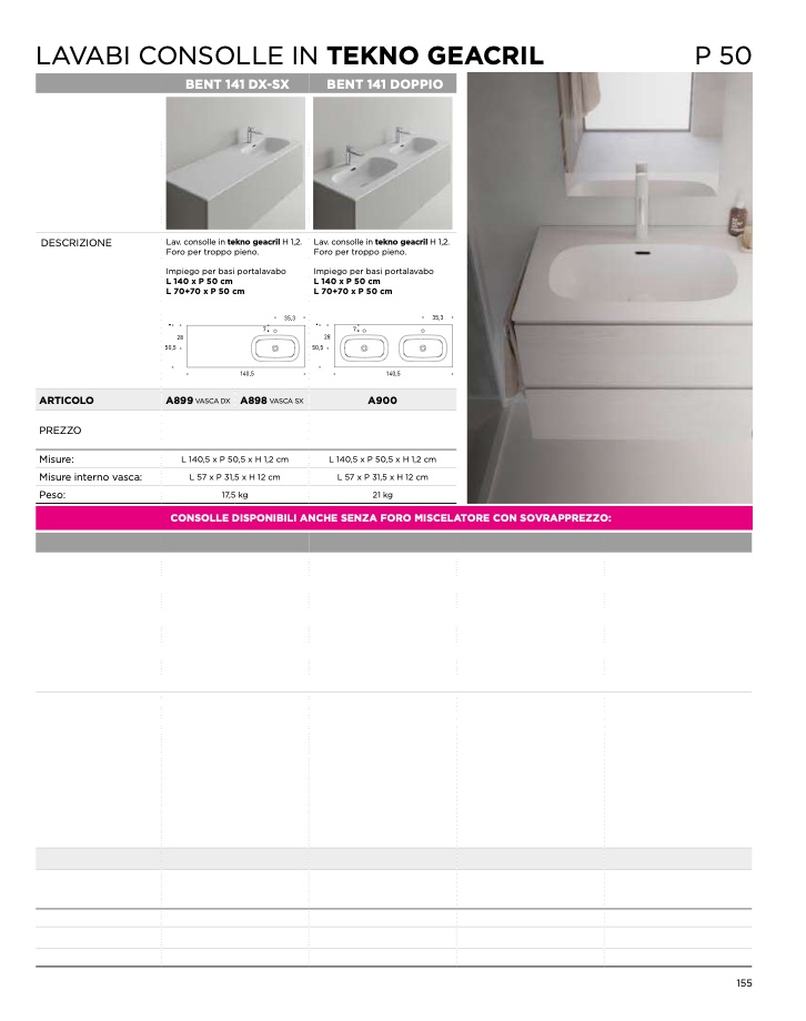 CONSOLLE DISPONIBILI ANCHE SENZA FORO MISCELATORE CON SOVRAPPREZZO: