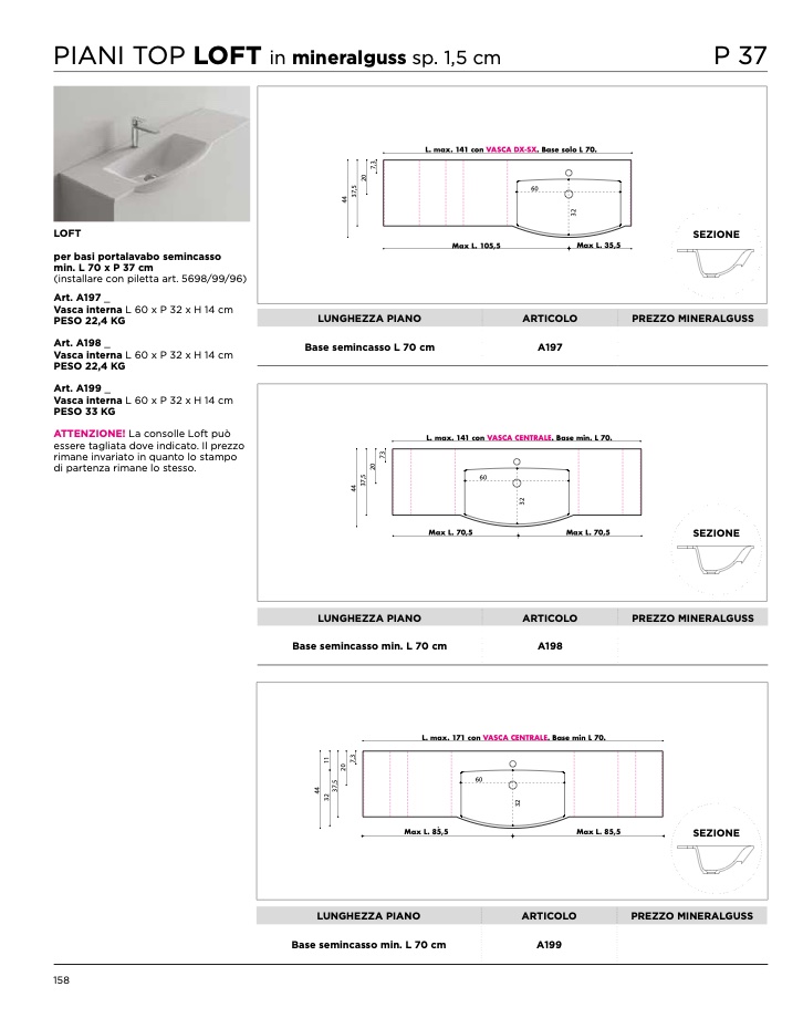 L. max. 141 con VASCA CENTRALE. Base min. L 70.