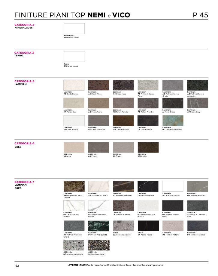 ATTENZIONE! Per la reale tonalità delle finiture, fare riferimento al campionario.