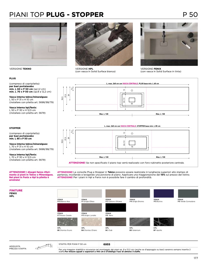 ATTENZIONE! Per i piani in Hpl e Fenix non è possibile fare il cambio di profondit