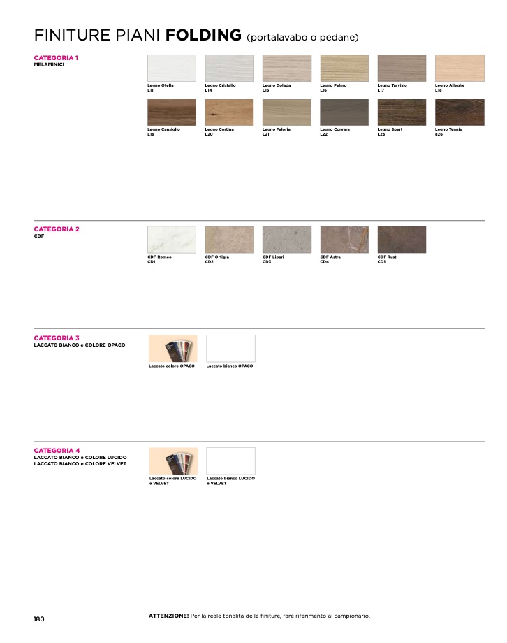 ATTENZIONE! Per la reale tonalità delle finiture, fare riferimento al campionario.