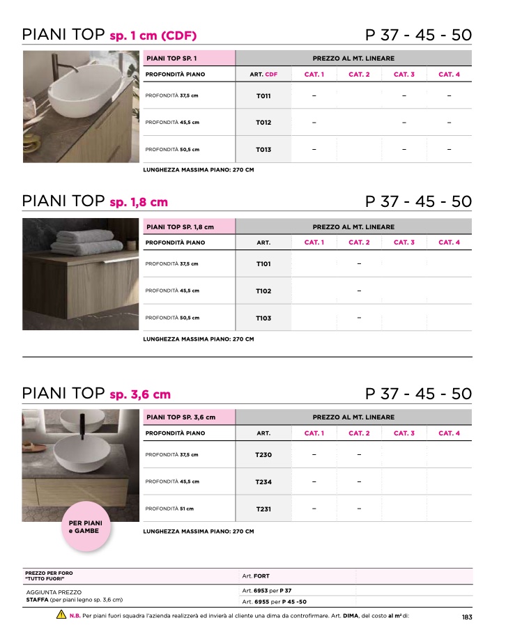 N.B. Per piani fuori squadra l’azienda realizzerà ed invierà al cliente una dima da controfirmare. Art. DIMA, del costo al m