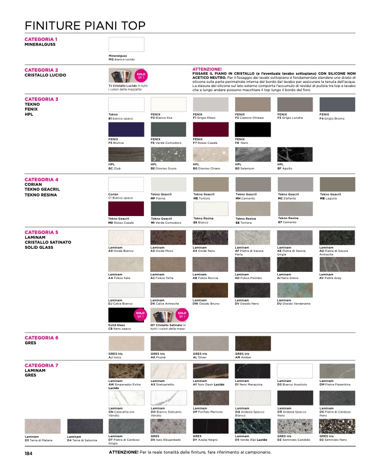 ATTENZIONE! Per la reale tonalità delle finiture, fare riferimento al campionario.
