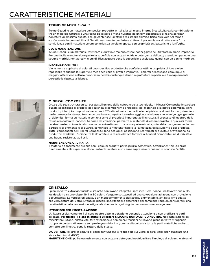 produttori affidabili. L’unione tra la dolomite e la resina elastica fornisce al Mineral Composite una durabilità e