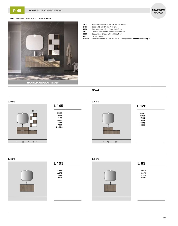 C. 08 - L21 LEGNO FALORIA - L 165 x P 45 cm