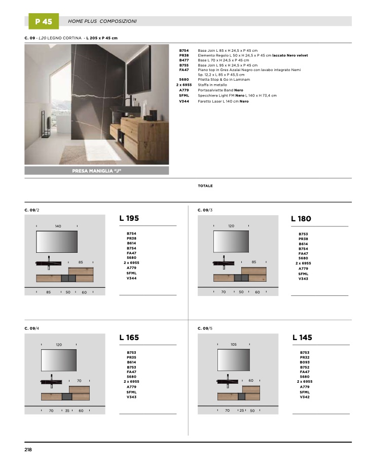 C. 09 - L20 LEGNO CORTINA - L 205 x P 45 cm