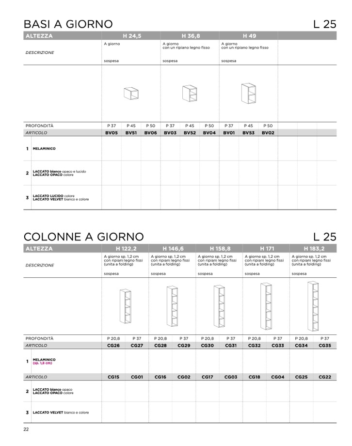 con ripiani legno fissi