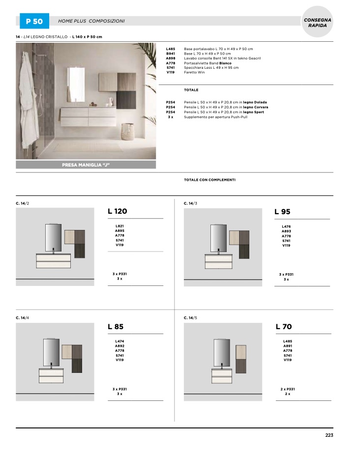 14 - L14 LEGNO CRISTALLO - L 140 x P 50 cm