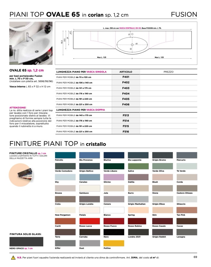 L. max. 250 cm con VASCA CENTRALE, DX-SX. Base FUSION min. L 70.
