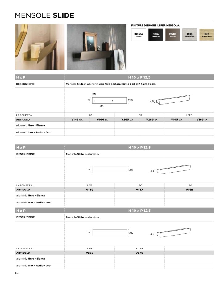 Mensole Slide in alluminio con foro portasalviette L 30 x P 4 cm dx-sx.