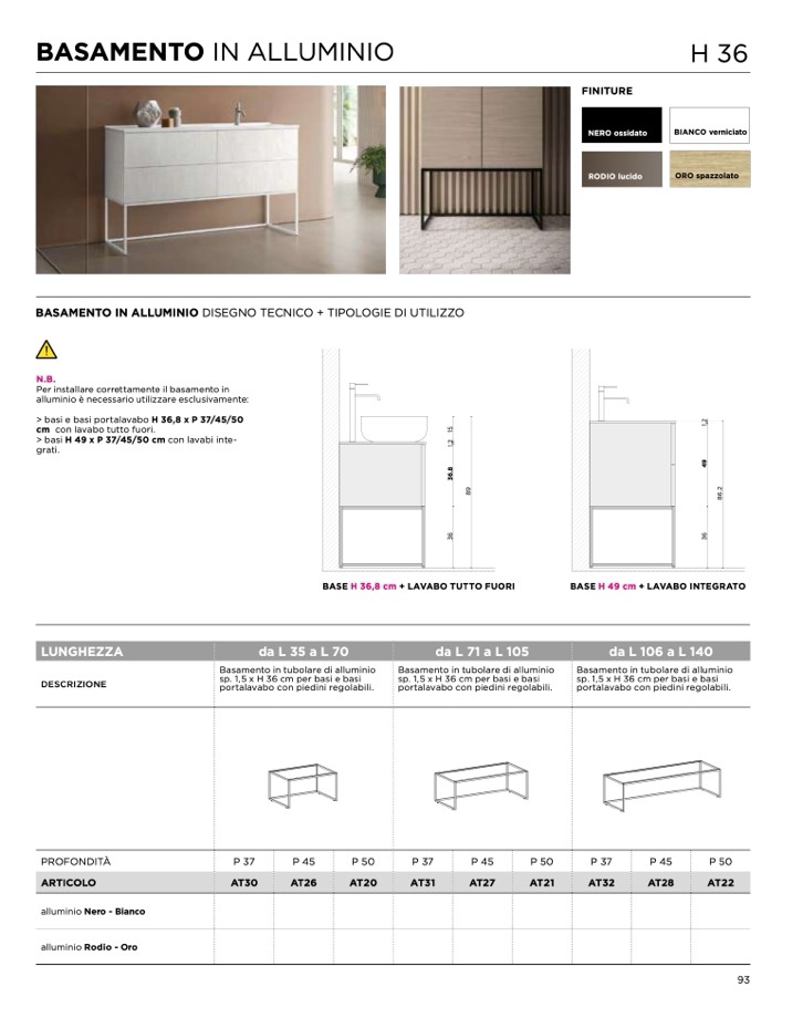 > basi e basi portalavabo H 36,8 x P 37/45/50