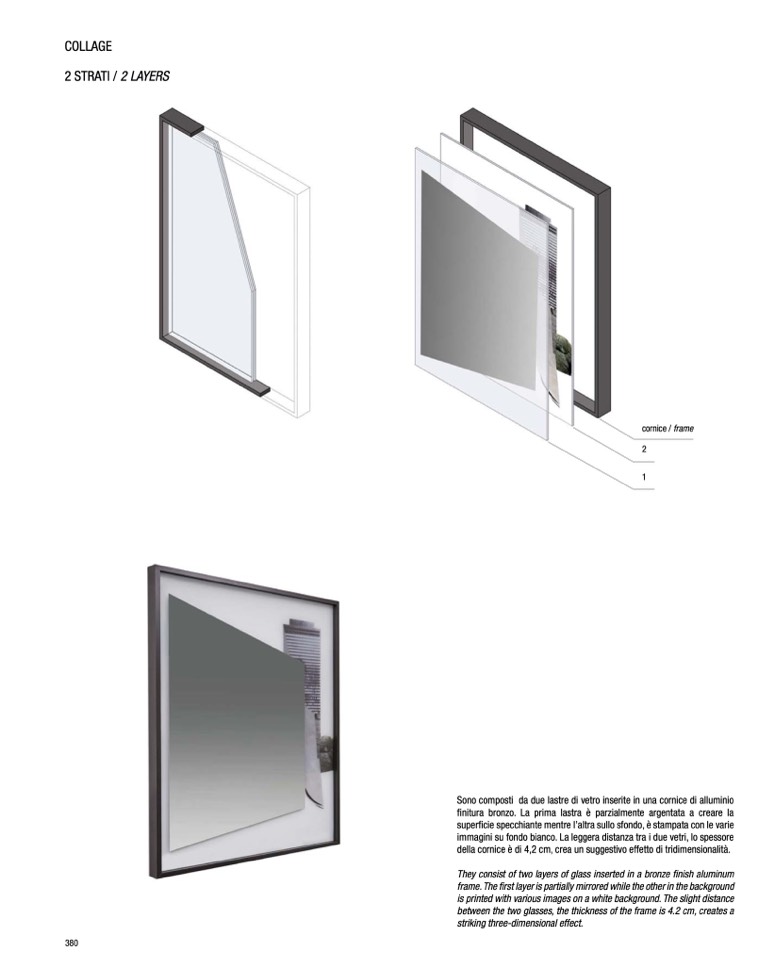 superficie specchiante mentre l’altra sullo sfondo, è stampata con le varie