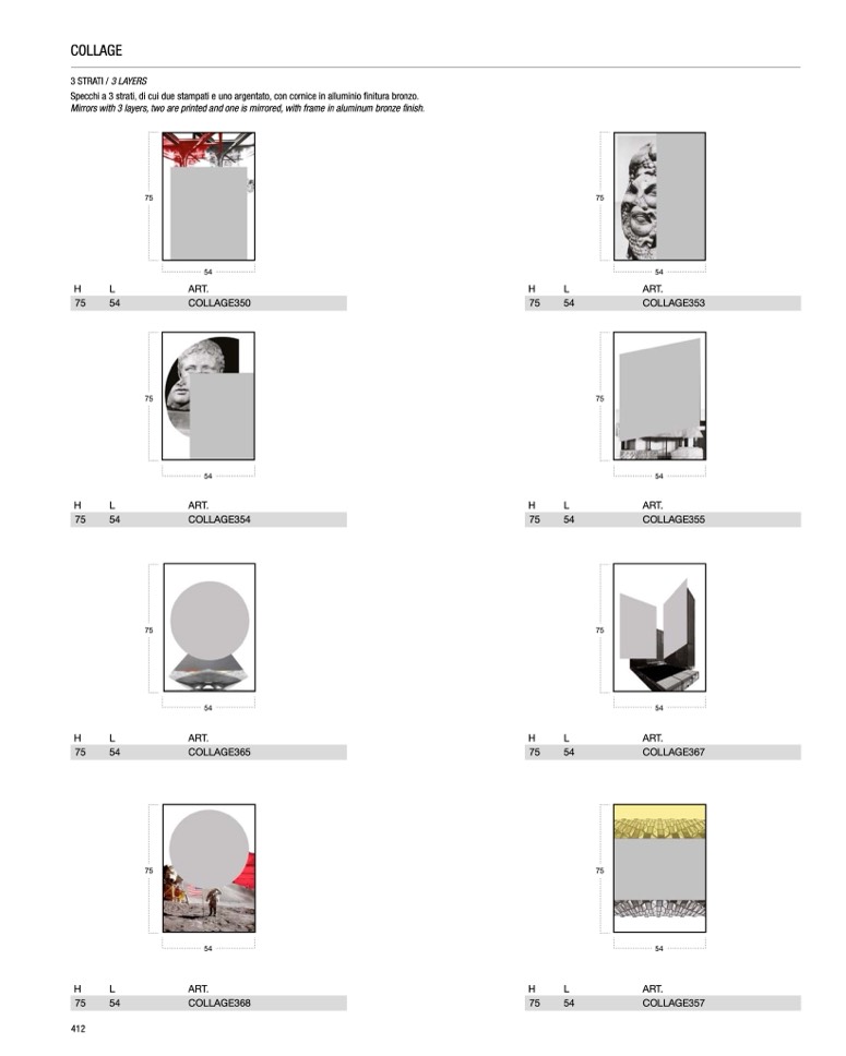 Mirrors with 3 layers, two are printed and one is mirrored, with frame in aluminum bronze finish.