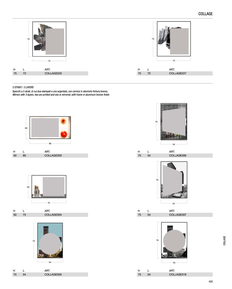 Mirrors with 3 layers, two are printed and one is mirrored, with frame in aluminum bronze finish.